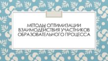 МЕТОДЫ ОПТИМИЗАЦИИ ВЗАИМОДЕЙСТВИЯ УЧАСТНИКОВ ОБРАЗОВАТЕЛЬНОГО ПРОЦЕССА