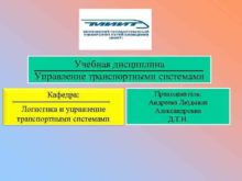 Учебная дисциплина Управление транспортными системами Кафедра Логистика и