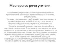Мастерство речи учителя Проблема профессиональной подготовки учителя приобретает