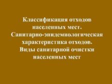 Классификация отходов населенных мест Санитарно-эпидемиологическая характеристика отходов Виды