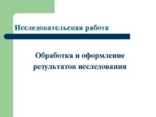 Исследовательская работа Обработка и оформление результатов исследования