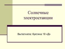 Солнечные электростанции Выполнила Куклина 10 Д Альтернативные