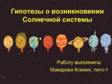 Гипотезы о возникновении Солнечной системы Работу выполнила Макарова