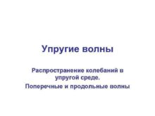 Упругие волны Распространение колебаний в упругой среде Поперечные
