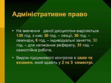 Адміністративне право На вивчення даної дисципліни виділяється