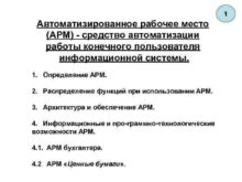 1 Автоматизированное рабочее место АРМ средство автоматизации работы