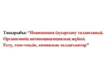 Тақырыбы Ноцицепция ауырсыну талдағышы Организмнің антиноцицепциялық жүйесі Есту