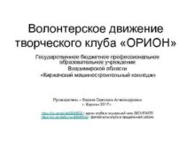Волонтерское движение творческого клуба ОРИОН Государственное бюджетное профессиональное