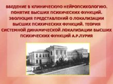 ВВЕДЕНИЕ В КЛИНИЧЕСКУЮ НЕЙРОПСИХОЛОГИЮ ПОНЯТИЕ ВЫСШИХ ПСИХИЧЕСКИХ ФУНКЦИЙ