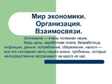 Мир экономики Организация Взаимосвязи Экономика очень полезная