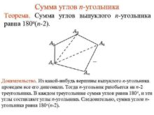 Сумма углов n-угольника Теорема Сумма углов выпуклого n-угольника