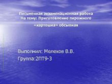 Письменная экзаменационная работа На тему Приготовление пирожного картошка