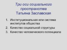 Три оси социального пространства Татьяна Заславская 1 Институциональная