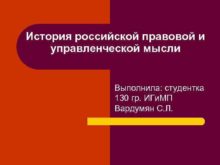 История российской правовой и управленческой мысли Выполнила студентка