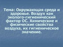 Тема Окружающая среда и здоровье Воздух как эколого-гигиенический