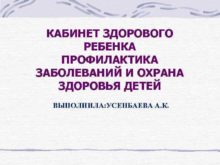 КАБИНЕТ ЗДОРОВОГО РЕБЕНКА ПРОФИЛАКТИКА ЗАБОЛЕВАНИЙ И ОХРАНА ЗДОРОВЬЯ