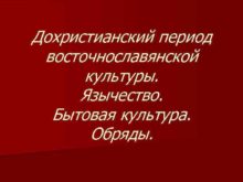 Дохристианский период восточнославянской культуры Язычество Бытовая культура Обряды