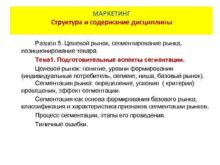 МАРКЕТИНГ Содержание МАРКЕТИНГ рабочей программы Структура и содержание