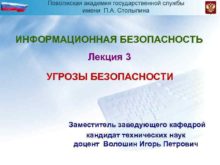 ИНФОРМАЦИОННАЯ БЕЗОПАСНОСТЬ Лекция 3 УГРОЗЫ БЕЗОПАСНОСТИ Заместитель заведующего