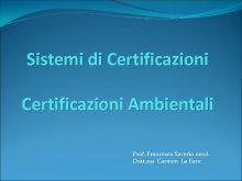 Sistemi di Certificazioni Ambientali Prof Francesco Saverio nesci