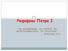 Реформы Петра I ТО АКАДЕМИК ТО ГЕРОЙ ТО