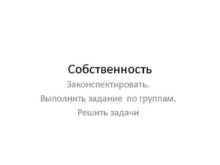Собственность Законспектировать Выполнить задание по группам Решить задачи