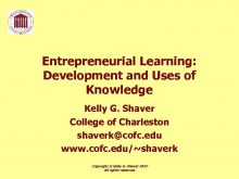 Entrepreneurial Learning Development and Uses of Knowledge Kelly