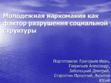 Молодежная наркомания как фактор разрушения социальной структуры Подготовили