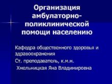 Организация амбулаторнополиклинической помощи населению Кафедра общественного здоровья и