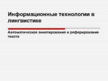 Информационные технологии в лингвистике Автоматическое аннотирование и реферирование