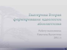 Екатерина Вторая формирование идеологии абсолютизма Работу выполнила Урвачева