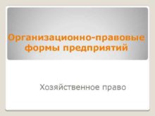 Организационно-правовые формы предприятий Хозяйственное право Цели изучения