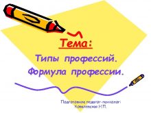 Тема Типы профессий Формула профессии Подготовила педагог-психолог Ковалевская