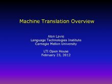 Machine Translation Overview Alon Lavie Language Technologies Institute