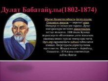 Дулат Бабатайұлы 1802 -1874 Шығыс Қазақстан облысы Аягөз ауданы