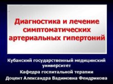 Диагностика и лечение симптоматических артериальных гипертоний Кубанский государственный