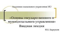 Академия социального управления МО Основы государственного и муниципального