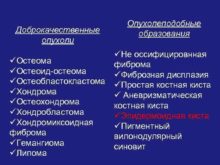 Доброкачественные опухоли Опухолеподобные образования üНе оссифицировнная üОстеома фиброма