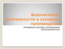 Безопасность деятельности в условиях производства ПРАВОВЫЕ ОСНОВЫ УПРАВЛЕНИЯ