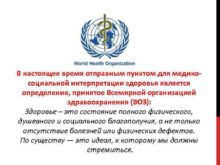 В настоящее время отправным пунктом для медикосоциальной интерпретации