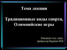 Тема лекции Традиционные виды спорта Олимпийские игры Кандидат