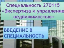Специальность 270115 Экспертиза и управление недвижимостью В