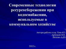 Современные технологии ресурсосбережения при водоснабжении используемые в коммунальном