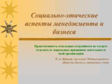 Социально-этические аспекты менеджмента и бизнеса Нравственность отдельных сотрудников