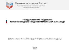 ГОСУДАРСТВЕННАЯ ПОДДЕРЖКА МАЛОГО И СРЕДНЕГО ПРЕДПРИНИМАТЕЛЬСТВА В 2016