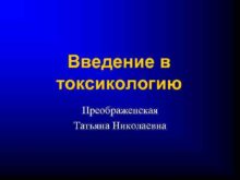 Введение в токсикологию Преображенская Татьяна Николаевна Τοξικον
