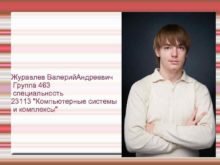 Журавлев Валерий Андреевич Группа 463 специальность 23113 Компьютерные