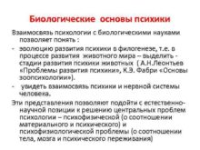 Биологические основы психики Взаимосвязь психологии с биологическими науками