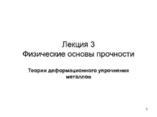 Лекция 3 Физические основы прочности Теории деформационного упрочнения