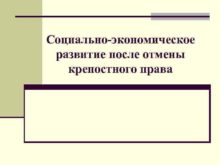 Социально-экономическое развитие после отмены крепостного права План